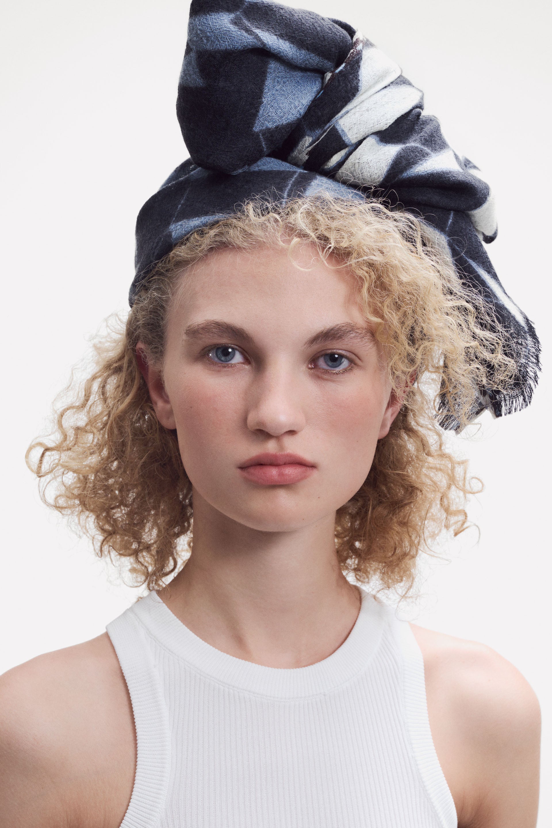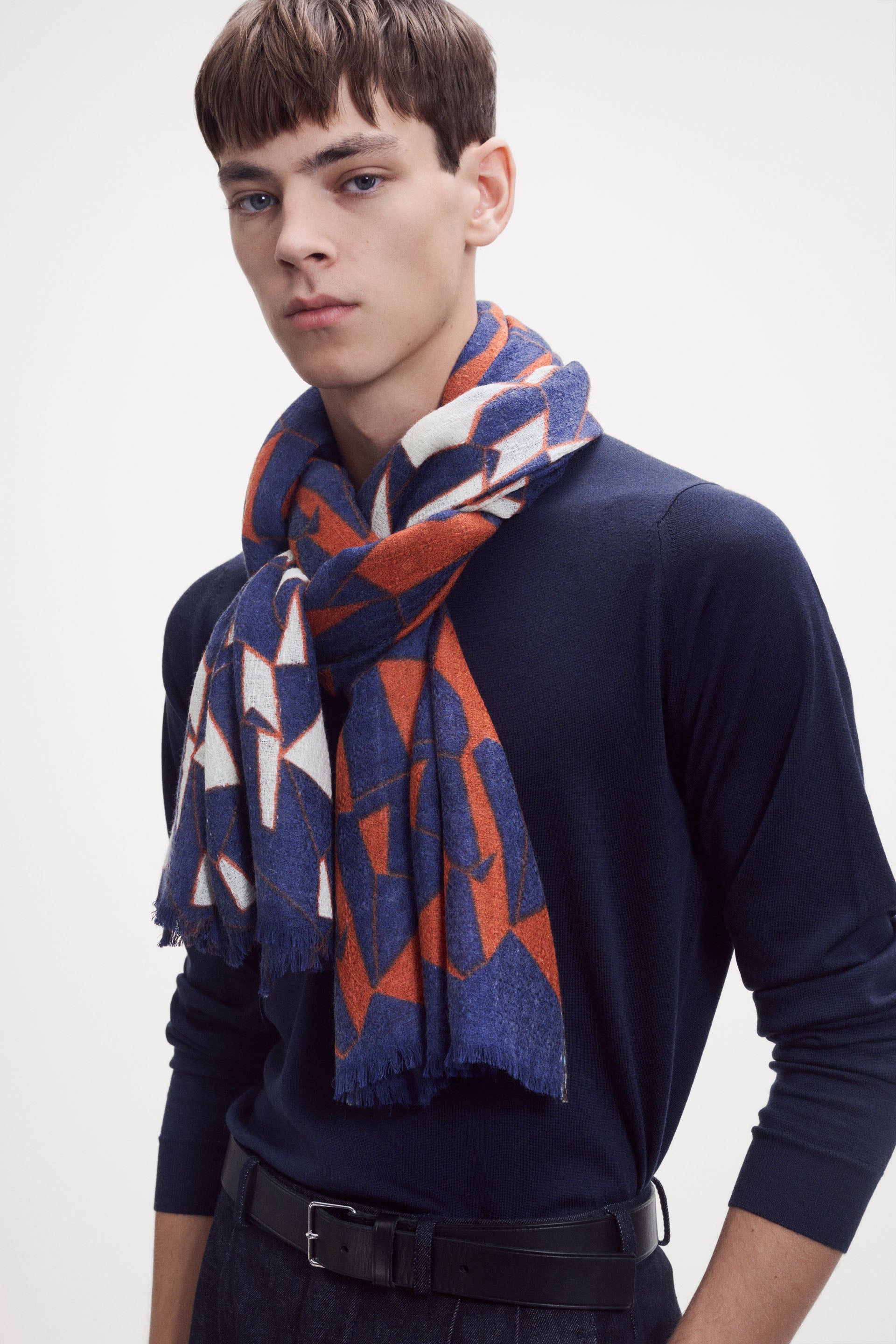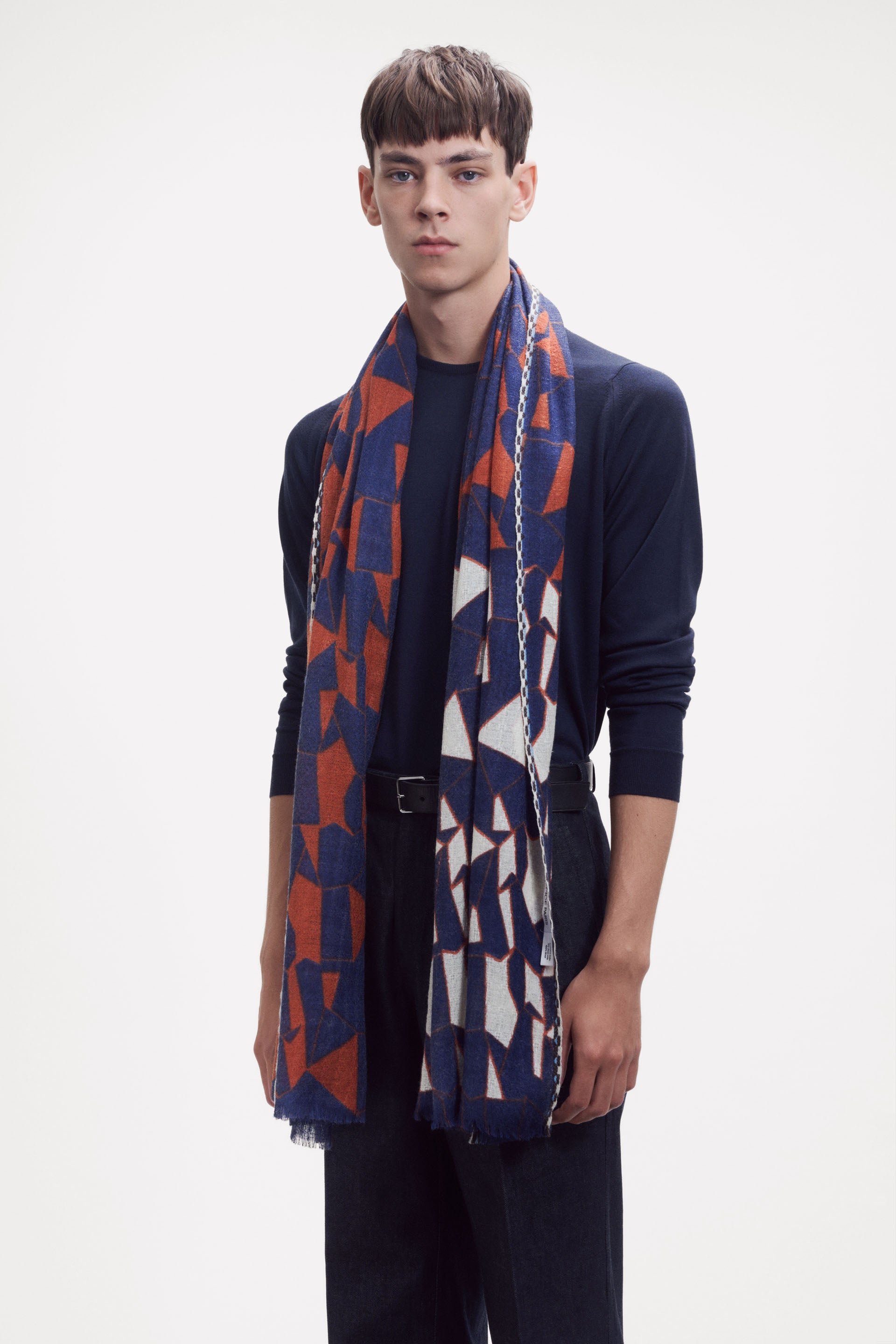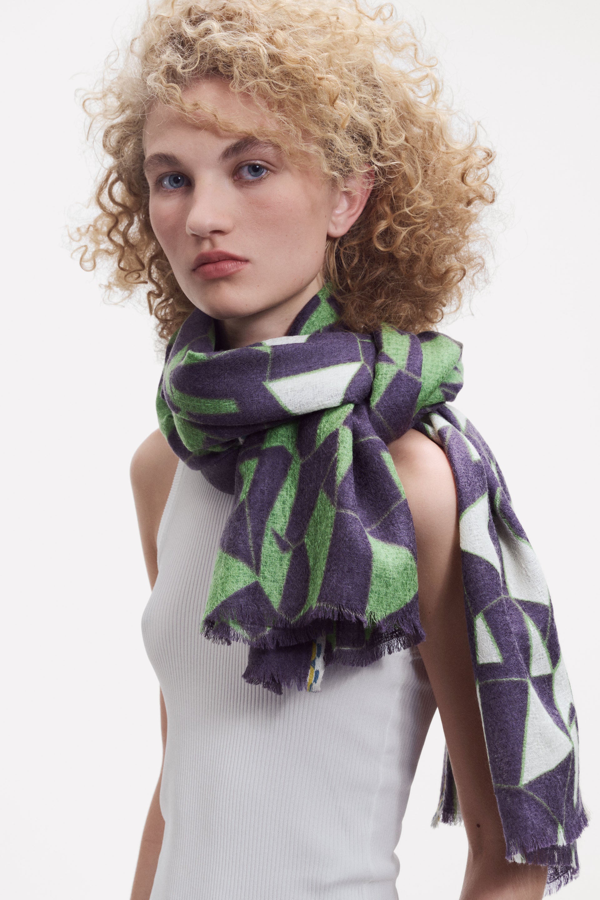 Thin, lightweight stole, in a subtly textured diamond weave. The elegant pattern draws inspiration from Arne Jacobsen’s textile work and the folds of origami. The Elephant motif, symbol of wisdom and loyalty, emerges through contrasting color combinations. A refined Jacquard border is adapted to each colorway. Finished with a fine short fringe. Hand screen printing; 1 screen per color.
