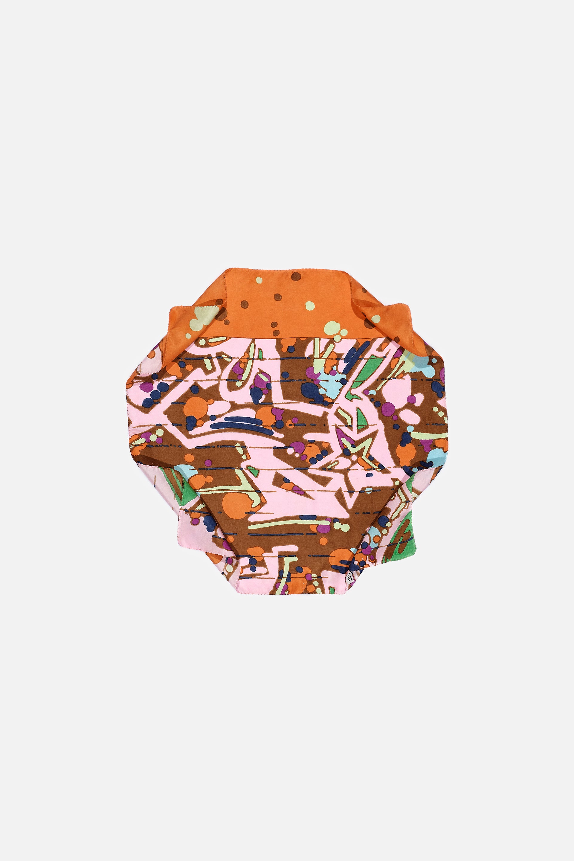 Petit carré en pure soie. L’art urbain rencontre l’élégance de la soie avec ce nouveau design Graffitis. Le motif célèbre l’art de vivre et l’audace créative de Christiania, quartier bohème et mythique de Copenhague. La brillance naturelle de la soie sublime l’intensité et la profondeur des couleurs. Dessin décliné de nos étoles PW 2501. Impression numérique. Fabriqué à Lyon, France.